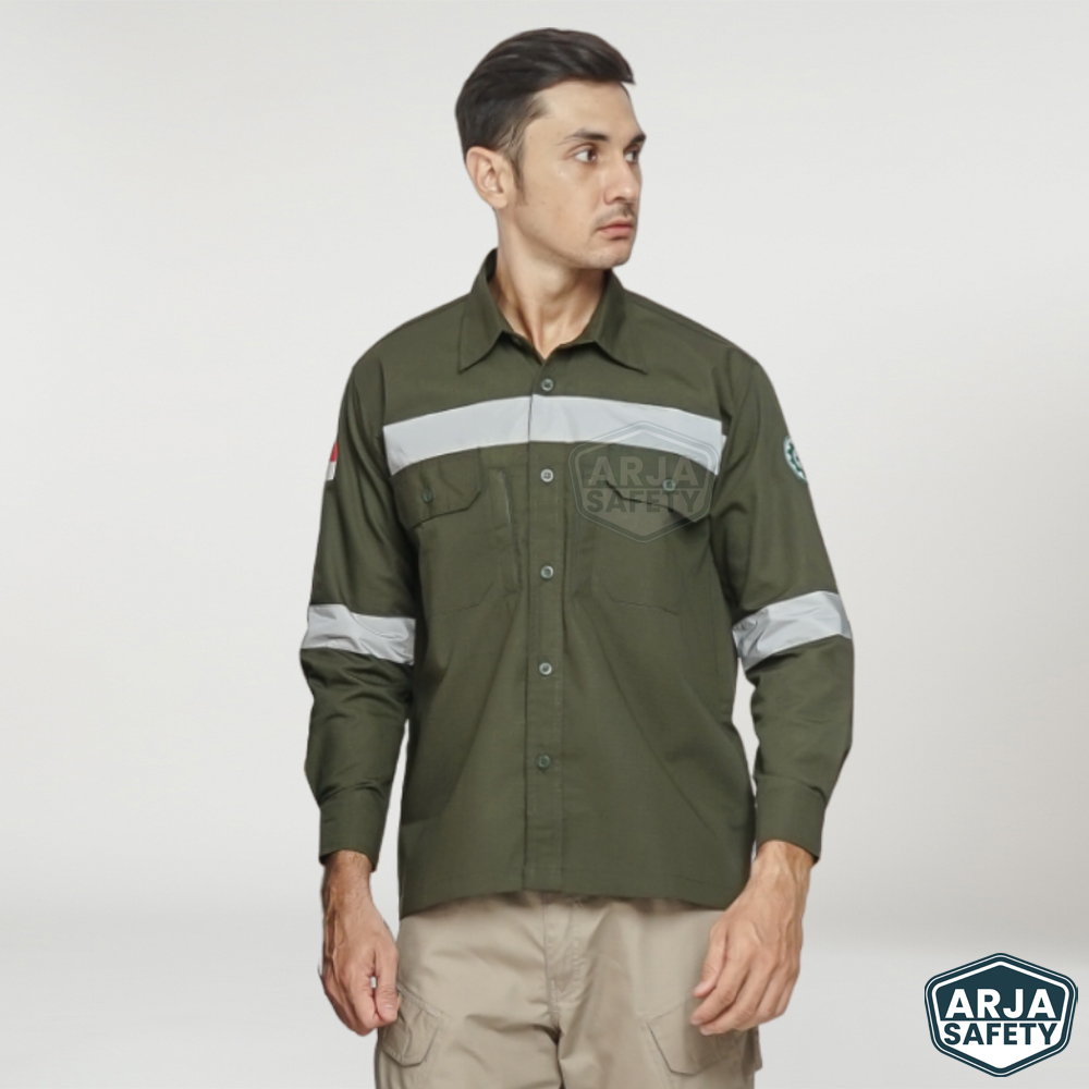 - FREE emblem Logo K3 (lengan kiri) dan logo Bendera Merah Putih (lengan kanan)
